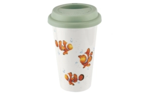 Emportez partout avec vous les charmantes illustrations de Wrendale Designs grâce à ce mug de voyage en porcelaine. Orné de poissons-clowns à rayures orange et blanches nageant dans la mer, ce mug vous permet de savourer votre boisson chaude préférée où que vous soyez. Il est fourni avec un couvercle en silicone vert clair pour éviter les fuites. Un cadeau idéal pour les personnes toujours en mouvement.