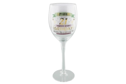 Ce magnifique verre à vin pour un 21e anniversaire arbore un design élégant et coloré rose et or. C'est le cadeau idéal pour célébrer cet événement important, présenté dans un emballage de qualité supérieure qui ne manquera pas d'attirer les regards.