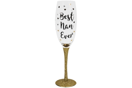 Une magnifique flûte à prosecco avec un pied à paillettes dorées, issue de la collection CELEBRATIONS® True Mother's Day. Ornée d'un cœur doré, de l'inscription « Meilleure Mamie du Monde » en noir et présentée dans un coffret cadeau avec fenêtre, elle est le cadeau idéal pour une femme exceptionnelle.