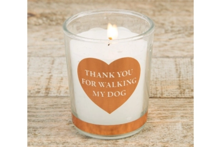 Une jolie bougie parfumée ornée du motif « Merci d'avoir promené mon chien » de la marque Best of Breed.