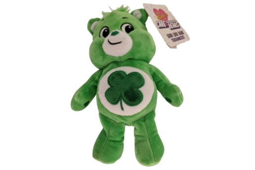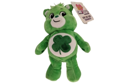 Apportez une touche de chance à votre foyer avec cette peluche Ours Porte-Bonheur de la célèbre série des Bisounours . Cet ours vert et joyeux rayonne de positivité et de chaleur grâce à sa douce fourrure, son sourire attendrissant et le trèfle à quatre feuilles emblématique sur son ventre, symbole de chance.