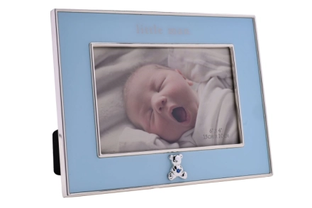 Célébrez un petit prince avec cet adorable cadre photo bleu. Orné de détails délicats et d'un bleu tendre, il offre un écrin parfait pour de précieux souvenirs.
