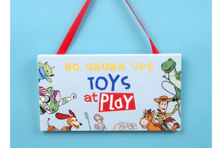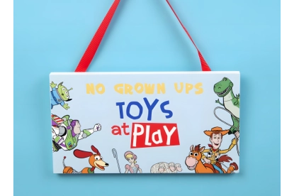 Faites de cette chambre une zone interdite aux adultes grâce à cette pancarte de porte « Interdit aux adultes, jeux en liberté ». De la collection Disney Pixar – des articles cadeaux à collectionner mettant en vedette les personnages animés préférés de tous.