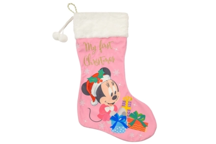 Rendez le premier Noël de votre enfant inoubliable avec cette ravissante chaussette de Noël Minnie Mouse de Disney . Conçue avec amour dans un doux ton rose, elle arbore une joyeuse image de Minnie et l'inscription brodée « Mon premier Noël » .