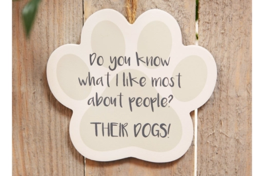 Cette plaque en bois, aux tons neutres crème et gris, et sa corde de suspension rustique en font l'accessoire de décoration idéal pour tout amoureux des chiens.