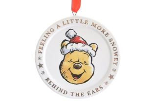 Apportez une touche joyeuse et emblématique à vos décorations de Noël avec ce magnifique pendentif en céramique Winnie l'Ourson . Le pendentif représente Winnie dans son style inimitable, avec l'inscription argentée « Je me sens un peu plus enneigé derrière les oreilles », et est agrémenté d'un ruban rouge pour l'accrocher facilement au sapin.