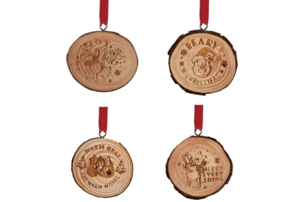 Apportez une touche de magie Disney à votre sapin de Noël ou à votre décoration hivernale avec cet ensemble de quatre décorations de Noël en bois à l'effigie de Winnie l'Ourson . Leur style rustique, imitant le bois, crée instantanément une ambiance chaleureuse et conviviale.