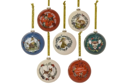 Apportez une touche de nostalgie et d'élégance à votre sapin de Noël avec cet ensemble raffiné de sept boules inspirées de Bambi . Chaque boule est soigneusement ornée de paillettes de couleurs différentes (blanc, rouge, bleu et vert) et présentée dans un luxueux coffret cadeau avec rubans dorés.
