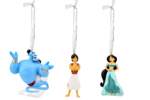 Apportez une touche de magie à votre sapin de Noël ou à vos décorations de fête avec cet ensemble de trois décorations suspendues représentant Aladdin , Jasmine et le Génie , personnages du classique Disney. Fabriquées en polyrésine robuste et peintes à la main, elles ajoutent une note luxueuse.