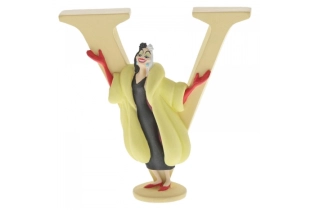 Apportez une touche d'originalité et d'élégance espiègle à votre collection avec cette lettre V Disney à l'effigie de Cruella d'Enfer . L'emblématique méchante des 101 Dalmatiens pose avec assurance à côté de la lettre, vêtue de son manteau spectaculaire et arborant un sourire malicieux. Un mélange parfait de style et de caractère, comme seule Cruella sait le faire.