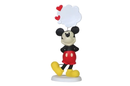 Exprimez vos sentiments avec cette magnifique figurine Mickey Mouse de la collection Precious Moments. Mickey, fier de son pantalon et de ses chaussures rouges emblématiques, tient une bulle de dialogue vierge au-dessus de sa tête – idéale pour y glisser un message personnel.