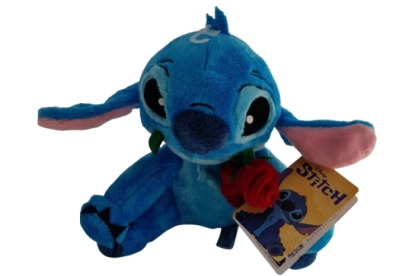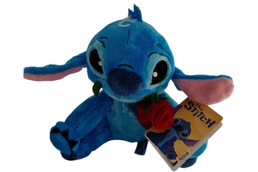 Craquez pour cette peluche Stitch de Disney, tenant une rose et mesurant environ 25 cm . Stitch, l'extraterrestre espiègle et affectueux de Lilo & Stitch , tient une rose rouge , symbole parfait d'amitié, d'amour et d'affection. Sa douce fourrure bleue et son regard tendre le rendent irrésistible pour les petits et les grands.