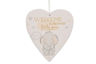 Célébrez l'arrivée d'un nouveau-né avec cette charmante plaque murale en bois en forme de cœur, ornée de l'inscription « Bienvenue au monde ». Ses douces couleurs pastel et ses délicates dorures créent une atmosphère chaleureuse et affectueuse, idéale pour une chambre d'enfant.