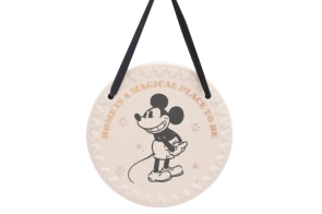 Apportez à votre intérieur une ambiance chaleureuse et joyeuse avec cette plaque ronde en céramique ornée du célèbre Mickey Mouse et du message « La maison est un lieu magique ». L'alliance de cette image emblématique et de ce texte amical fait de cette pièce un objet de décoration charmant.