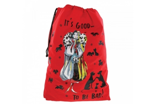 Cruella De Vil et les 101 Dalmatiens se détachent sur ce sac rouge vif. Ce sac, au design original et attrayant, peut être utilisé toute l'année ou trôner fièrement au pied du sapin d'un fan de méchants à Noël. Il est fourni avec une étiquette cadeau.