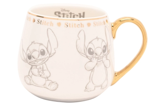 Commencez votre journée avec élégance grâce à cette magnifique tasse à l'effigie de Stitch . Sa porcelaine de haute qualité et ses délicates finitions dorées lui confèrent une allure luxueuse qui s'accordera aussi bien à une collection qu'à une cuisine raffinée.