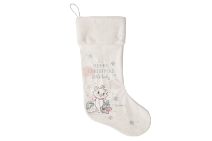 Apportez une touche d'élégance et de charme à votre intérieur avec cette ravissante chaussette de Noël Disney à l'effigie de Marie des Aristochats. Son tissu ivoire doux, ses détails scintillants et l'inscription « Joyeux Noël, Petite Dame » en font un accessoire qui ne manquera pas d'attirer les regards pendant les fêtes.