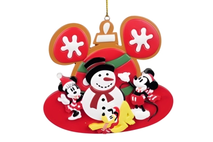 • Décoration douillette représentant Mickey et Minnie accompagnés d'un joyeux bonhomme de neige.