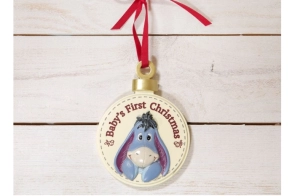 Une adorable plaque à suspendre Bourriquet pour le premier Noël de bébé. Issue de la collection Disney Winnie l'Ourson « Premier Noël de bébé », elle donne vie aux personnages adorés d'A.A. Milne dans de ravissants cadeaux de Noël pour bébés.