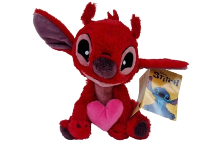 Cette peluche Disney Leroy, ornée d'un cœur et mesurant environ 25 cm, est le cadeau idéal pour les fans de Lilo & Stitch . Leroy, alias Expérience 629 , est confectionné dans une peluche violette d'une douceur incomparable et serre contre lui un cœur rouge vif. Son sourire malicieux et sa nature chaleureuse le rendent aussi joueur qu'adorable.
