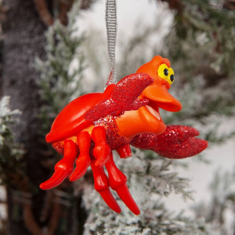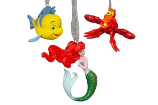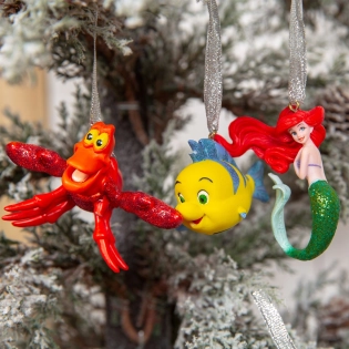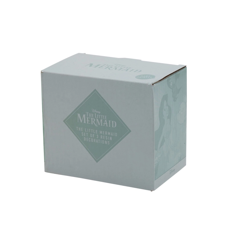 Ce charmant ensemble de trois décorations de Noël en résine apporte la magie de La Petite Sirène directement à votre sapin. L'ensemble comprend trois ornements peints à la main : Sébastien avec des paillettes rouges, Polochon avec des paillettes bleues et Ariel avec des paillettes vertes, chacun orné d'un ruban argenté à paillettes pour une touche festive.