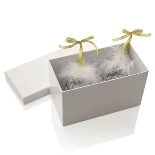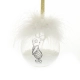 Chaque boule mesure 8 cm de diamètre et arbore une allure élégante grâce à l'alliance de l'acrylique transparent, de la neige artificielle et de délicates plumes. Suspendues à un ruban doré, elles apportent une touche festive. Leur légèreté permet de les accrocher facilement à n'importe quelle branche sans la déformer.
