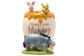 Cette adorable tirelire Disney Winnie l'Ourson « De l'argent pour du miel » apportera une touche de nostalgie à votre intérieur. Son design représente Winnie et Porcinet assis dans un pot de miel : un objet décoratif joyeux qui égayera n'importe quelle pièce. Fabriquée en résine robuste, cette tirelire est durable et de haute qualité.