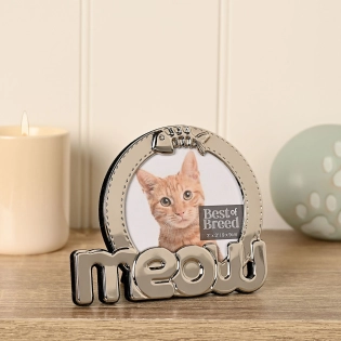Van Best of Breed – cadeaus om onze harige, viervoetige vrienden te vieren. Gemaakt van glanzend metaal heeft dit fotolijstje impact met de 'Meow' tekst en visgraatversiering.