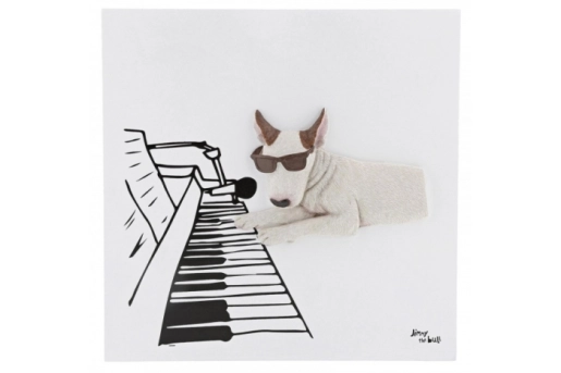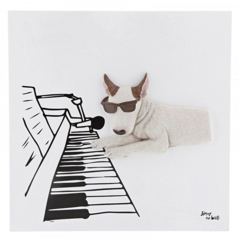 Pronk met je favoriete bull terrier met deze fantastische kunst aan de muur met de enige echte Jimmy the Bull die piano speelt. Een must voor een familie van hondenliefhebbers, deze unieke Jimmy-muurkunst zal zeker een glimlach op het gezicht van dierenliefhebbers brengen.