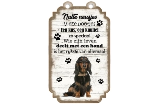 Het Spreukenbordje kan worden neergezet of opgehangen aan de twee voorziene oogjes.