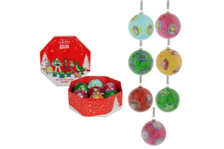 Elke set bevat 7 ballen met verschillende personages / designs: o.a. Woody, Buzz Lightyear, Jessie, Rex, Hamm, de Alien en Little Bo Peep — allemaal herkenbaar voor fans van het klassieke Toy Story-universum. Dankzij de zilverkleurige glitter linten om op te hangen, voeg je in één keer een vrolijke, feestelijke en Disney-vriendelijke touch toe aan je kerstboom.