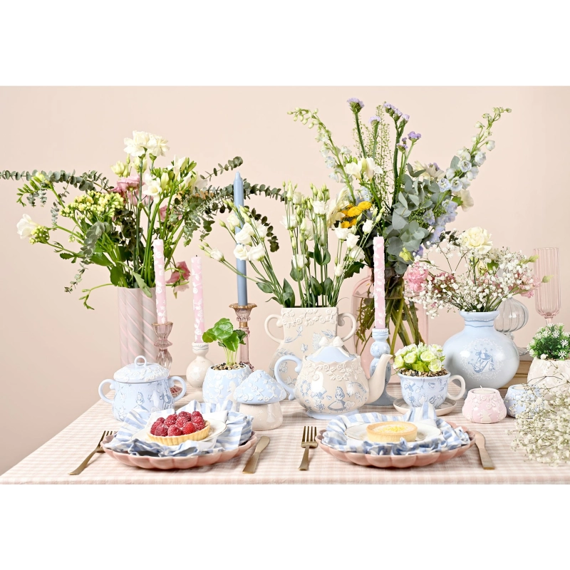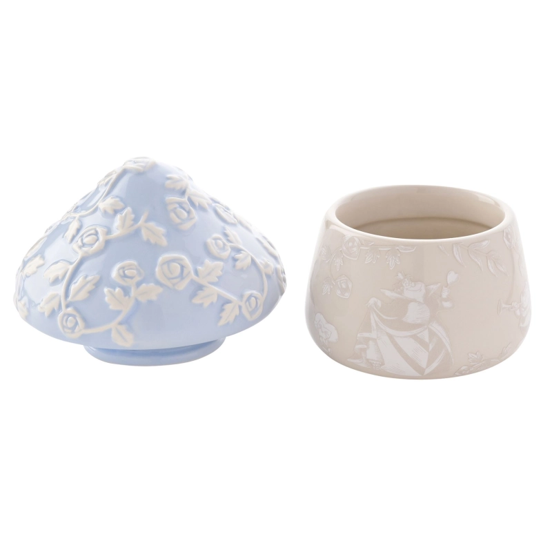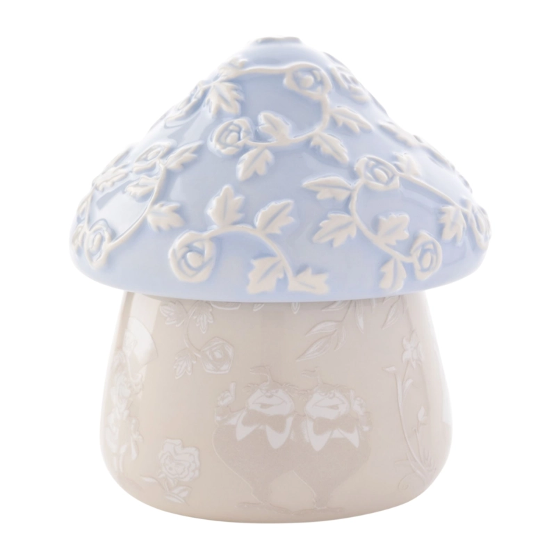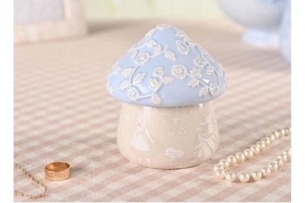 Verwelkom een tikje fantasie in je interieur met deze charmante sieradendoos, geïnspireerd door het magische universum van Alice in Wonderland. Gemaakt van glanzend keramiek in een warme combinatie van blauw en beige, met subtiele decoratieve details die doen denken aan de iconische paddenstoelen uit het verhaal.