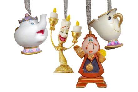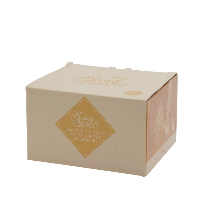 Voeg een vleugje sprookjesachtige elegantie toe aan je kerstboom met deze prachtige set van vier hangdecoraties waarin de geliefde figuren Barstje, Mevrouw Tuit, Pendule & Lumière schitteren. Het hoogwaardige materiaal van hars en de verfijnde handgeschilderde afwerking geven dit item een verfijnde uitstraling.