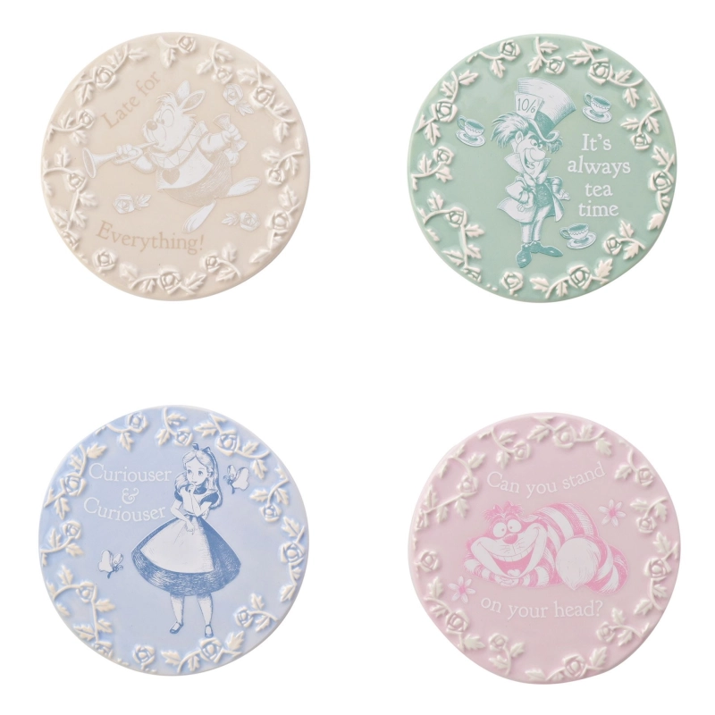 Voeg een vleugje fantasie toe aan jouw koffiepauze met deze charmante set van vier onderzetters uit de geliefde Alice in Wonderland collectie van Disney. Elke onderzetter is vervaardigd van hoogwaardig keramiek met een geglazuurde afwerking, met schitterende illustraties en bijpassende tekst geïnspireerd op het magische sprookje.
