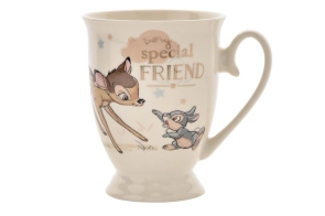 Deze betoverende Bambi mok uit de Magical Beginnings-collectie combineert nostalgie, zachtheid en elegantie in één prachtig serviesstuk. De mok toont een lieve illustratie van Bambi met de boodschap “Special Friend”, subtiel afgewerkt in glanzend goudfolie voor een luxe uitstraling.