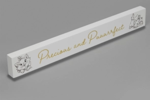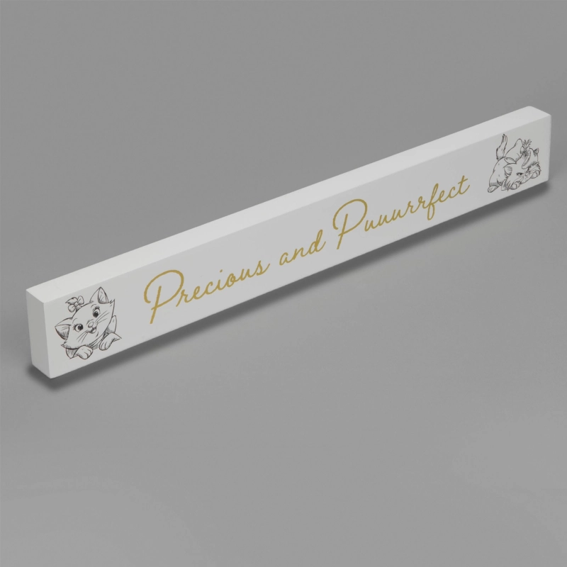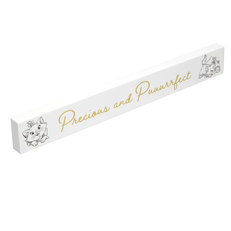 Deze verfijnde desk plaque uit de Classic Collectables-serrie van Disney brengt de iconische kat Marie tot leven in een tijdloze, stijlvolle uitvoering. De plaque is gemaakt van MDF met een witte afwerking en draagt een subtiele pencil-style illustratie van Marie gecombineerd met de tekst “Precious & Puuurrrrfect” in luxe goudfolie — een elegante touch die past in elk interieur.