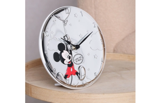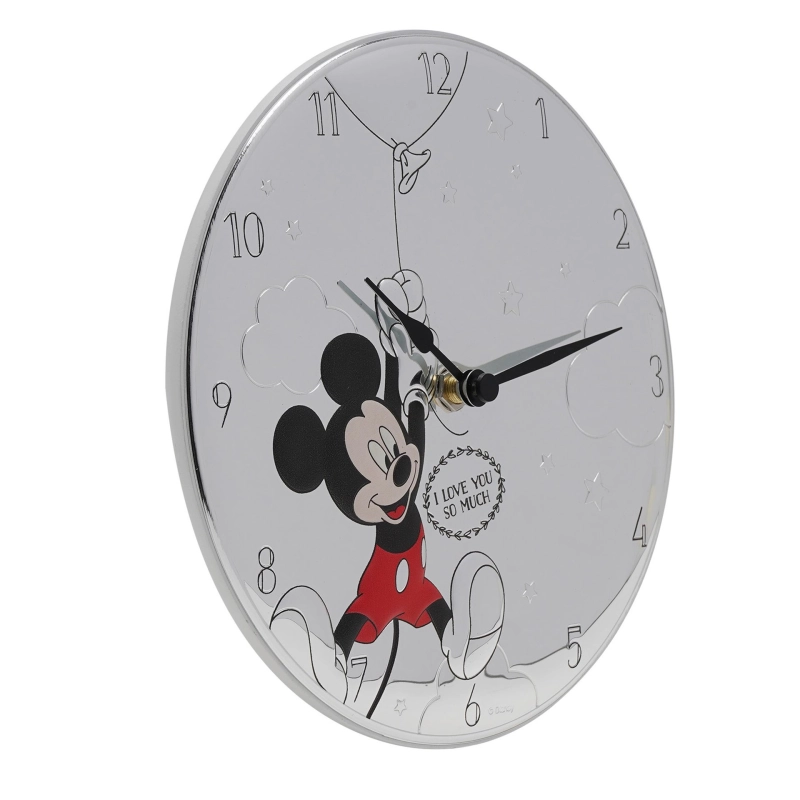 Voeg een vleugje tijdloze Disney-magie toe aan je interieur met deze verfijnde wandklok, met een subtiel, gestileerd ontwerp waarin Mickey Mouse centraal staat tegen een dromerige sterrenhemel. Dankzij de hoogwaardige afwerking met echte 999-zilverplaat krijgt de klok een luxe, glanzende look — perfect voor een woonkamer, kinderkamer of studeerhoek.