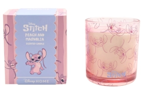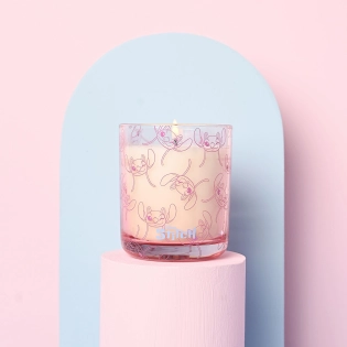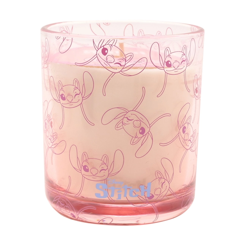 Deze sfeervolle geurkaars in glas met het lieve personage Angel uit de wereld van Lilo & Stitch voegt direct warmte en gezelligheid toe aan je interieur. De kaars staat in een roze glazen houder met schattige illustraties en wordt geleverd in een bijpassende cadeauverpakking – helemaal klaar om te geven of zelf van te genieten.