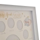 Met deze charmante “My 1st Year” fotolijst uit de Magical Beginnings-lijn kun je alle eerste momenten van een baby verwerken — van geboorte tot de eerste verjaardag. De lijst is voorzien van een centrale ovale foto-opening, omringd door twaalf kleinere apertures zodat je van maand tot maand een foto kunt bijhouden.