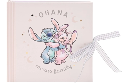 Dit charmante fotoboek met het iconische figuur Stitch en Angel brengt warmte en nostalgie naar elke babykamer of familiekamer. Het album is ontworpen om de mooiste foto’s van een zwangerschap, geboorte of eerste jaren te bewaren — van eerste lachjes tot dierbare momenten. De illustratie van Stitch en zijn vriendinnetje op een sterrenhemel-achtergrond geeft het geheel een speelse, liefdevolle uitstraling.