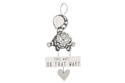 Deze kleine wandplaque uit de Cats & Dogs-lijn brengt het iconische figuur van de Cheshire Cat op een charmante en humoristische manier tot leven. Met de grappige tekst “This way? Or that way?” straalt de plaque speelsheid en karakter uit — ideaal voor hal, gang, keuken, kattenhoek of huisdierenruimte.