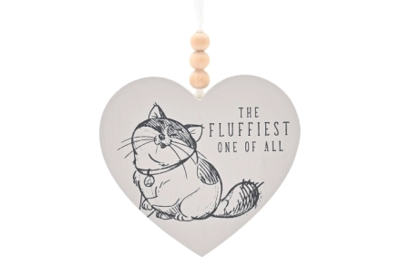 Deze hartvormige wandbordje met de tekst “The Fluffiest One Of All” uit de Cats & Dogs-lijn brengt meteen een warme en huiselijke sfeer in je interieur. De plaat is vervaardigd van MDF met een matte afwerking en is voorzien van houten kralen en een ophangsnoer — een charmant detail dat het geheel een knusse, handgemaakte uitstraling geeft.