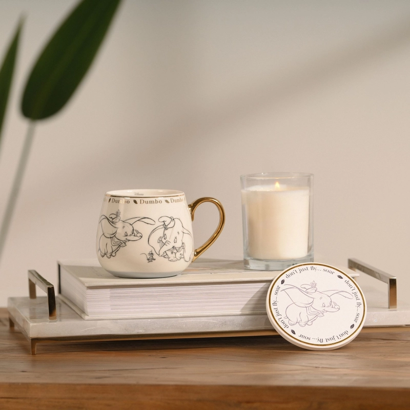 Met deze prachtige keramische onderzetter met Dumbo-motief geef je jouw woonruimte een charmante en speelse uitstraling. Het iconische karakter Dumbo is afgebeeld samen met de inspirerende zin “Don’t just fly… soar”, waardoor deze onderzetter zowel functioneel als decoratief inzetbaar is