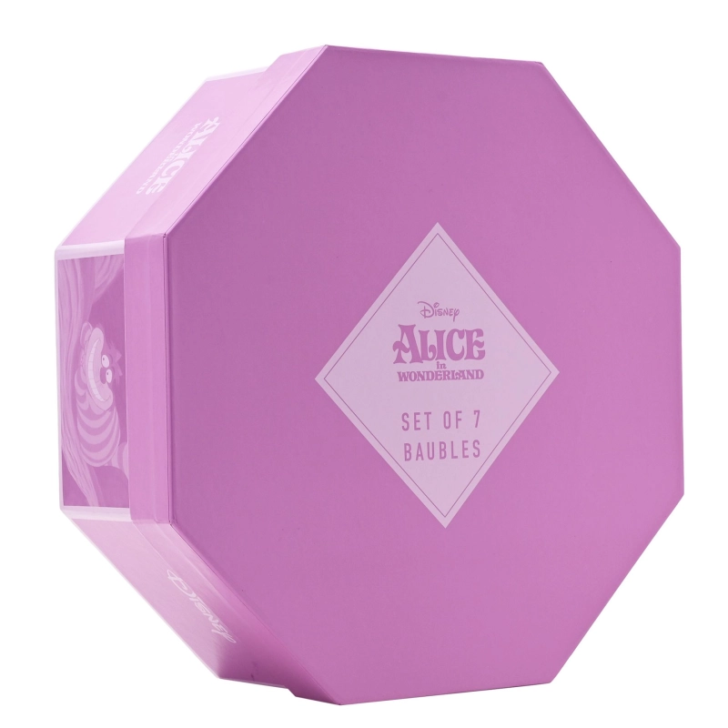 Deze feestelijke set van 7 kerstballen laat geliefde figuren uit Alice in Wonderland schitteren in jouw kerstdecor. Elke bal is voorzien van kleurrijke, gedetailleerde illustraties — waaronder de Cheshire Cat, het Witte Konijn, de Mad Hatter en Alice zelf — waardoor de typische speelse en fantasierijke sfeer van het sprookje in huis wordt gehaald.