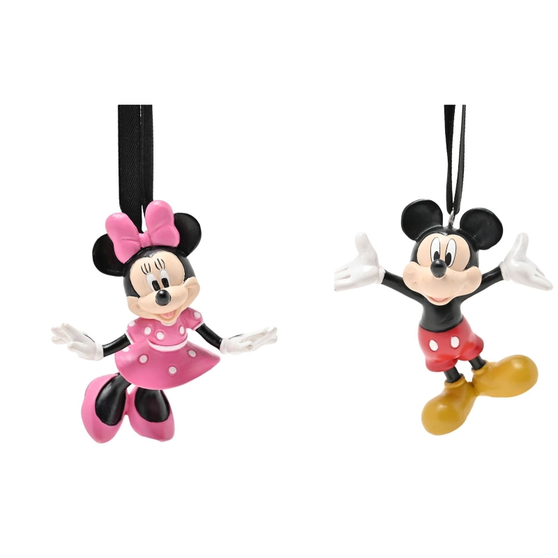 Deze charmante set van 2 resin hangornamenten brengt de tijdloze vriendschap en liefde tussen Mickey en Minnie Mouse tot leven in een elegant en sfeervol decorstuk. Mickey draagt zijn klassieke outfit met rode broek en gele schoenen, terwijl Minnie straalt in een schattig roze ensemble met haar kenmerkende strik — beiden vol nostalgie en vrolijkheid.