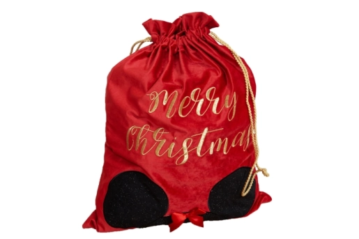Geef je kerstcadeaus een extra feestelijke touch met deze elegante kerstcadeauzak met Minnie Mouse. De zak is vervaardigd uit rijk rood fluweel en straalt warmte en feestelijkheid uit — perfect om cadeaus stijlvol te verpakken en onder de kerstboom te presenteren.