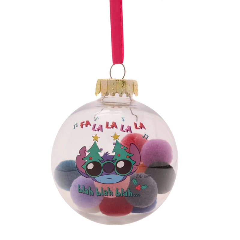 Laat jouw kerstboom schitteren met deze prachtige set van zeven transparante kerstballen met Stitch-design. Elke bal is gevuld met kleurrijke pom-poms en versierd met het vrolijke gezicht van Disney’s Stitch – de geliefde blauwe alien die plezier en chaos brengt in elke kamer.