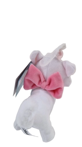Ontdek de betoverende wereld van The Aristocats met deze prachtige pluche knuffel van het schattige poesje Marie. Haar zachte witte vacht, charmante roze strik en levendige uitstraling maken haar direct herkenbaar en geliefd.
