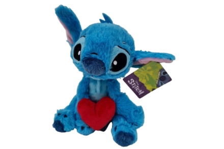 Laat je hart smelten met deze Disney Stitch knuffel met hart van ongeveer 25 cm. Stitch, het ondeugende maar liefdevolle buitenaardse wezentje uit Lilo & Stitch, houdt een rood hart stevig vast – een symbool van vriendschap, liefde en warmte. Zijn vrolijke glimlach en zachte pluche maken hem het perfecte gezelschap voor jong en oud.