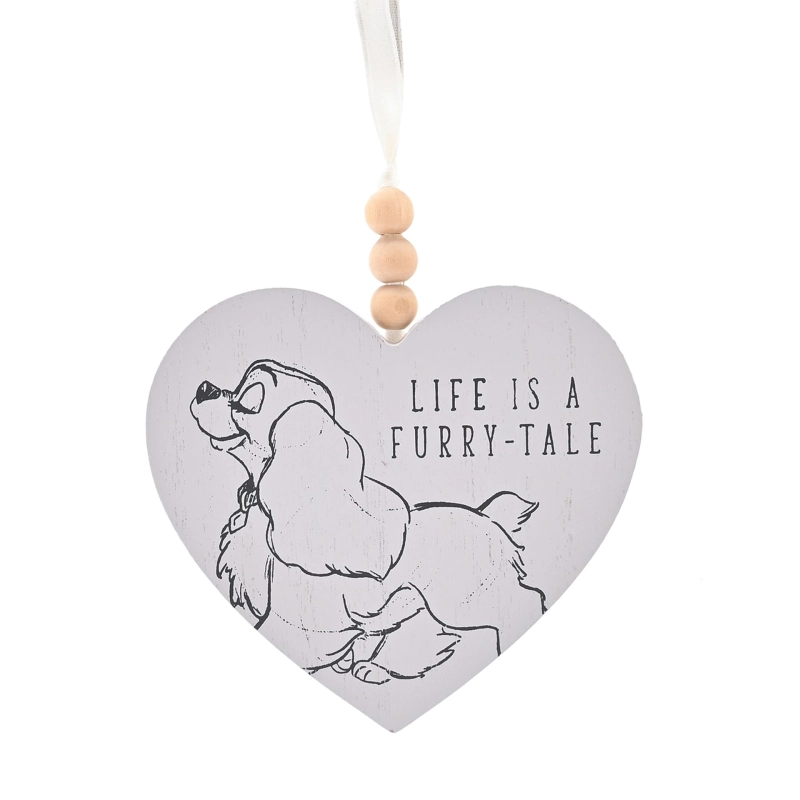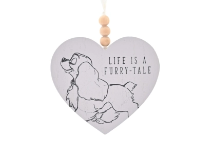 Breng een vleugje Disney-magie in huis met deze charmante hartvormige decoratie-plaque van Lady & de Vagebond. Deze stijlvolle woondecoratie maakt deel uit van de Disney Cats & Dogs-collectie en is voorzien van de hartverwarmende tekst “Life is a furry-tale”.